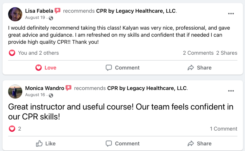 As an instructor with Legacy CPR, you act as your own boss. Teach classes on your own time, as often or as little as you'd like. In addition, you set your own prices for your courses.